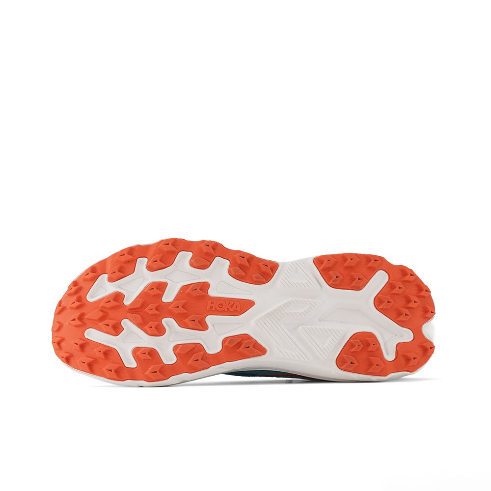 Особое внимание уделено верхней части обуви: минималистичная сетка обеспечивает хорошую вентиляцию и легкость, а прочный резиновый носок защищает от повреждений. Новая ориентация разнонаправленных протекторов подошвы гарантирует отличное сцепление и уверенность на сложных трейлах.