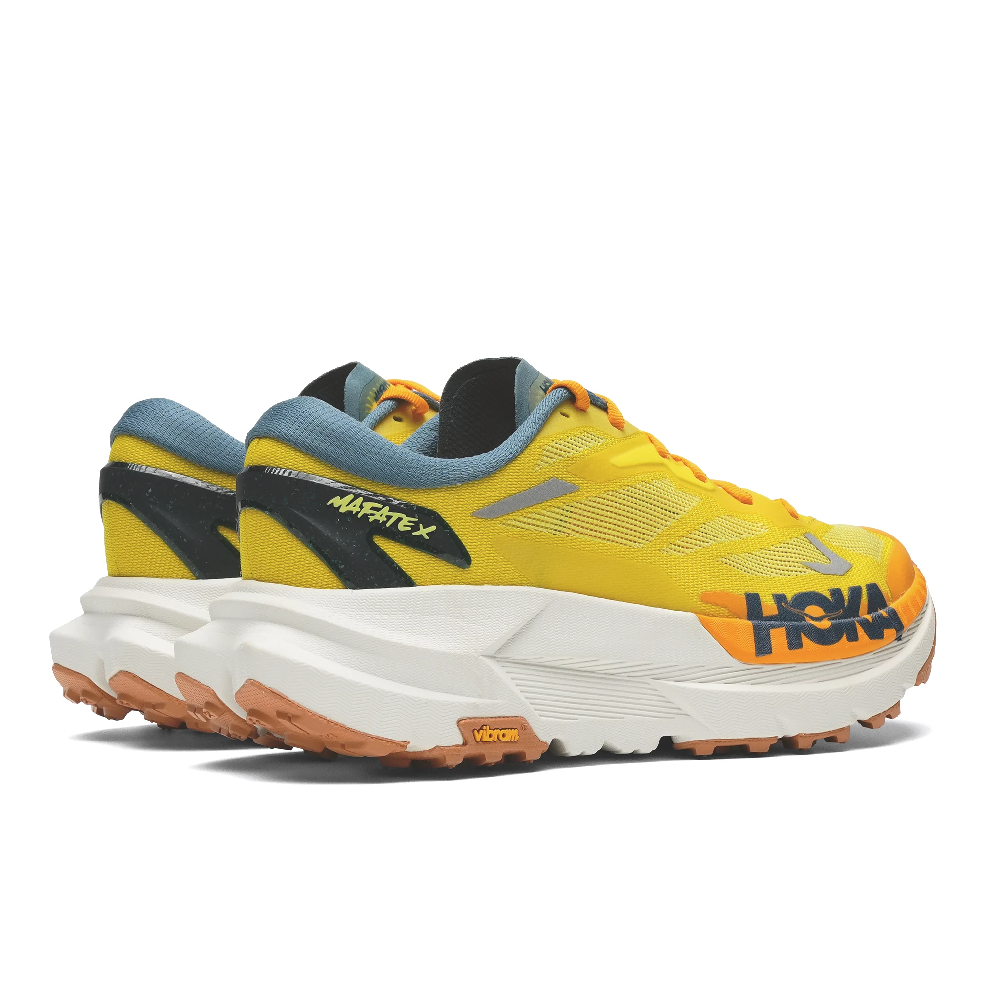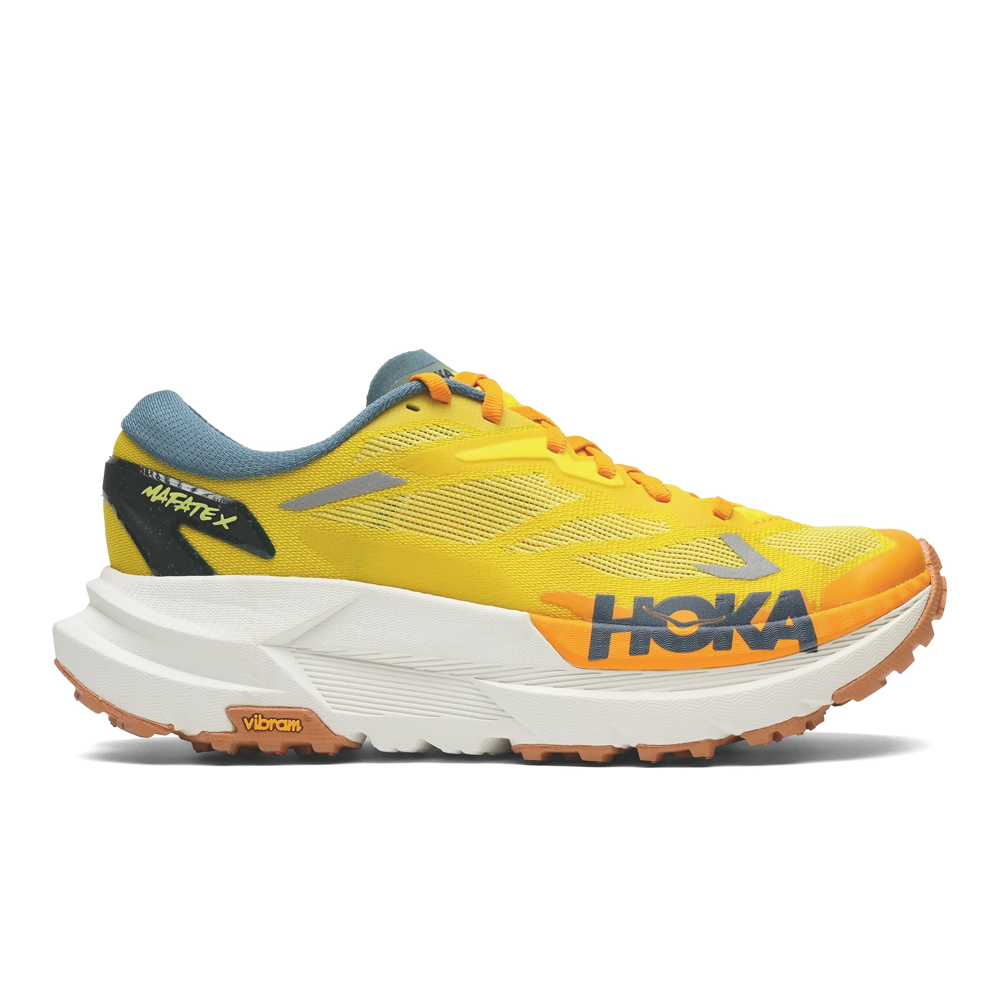 Кроссовки Mafate X созданы на основе ДНК Hoka благодаря ультравысокой межподошве из пеноматериала CMEVA, которая обеспечивает мягкость и амортизацию даже после многих километров. Широкая платформа гарантирует устойчивость на неровной поверхности, а интегрированная пластина из углеродного волокна обеспечивает дополнительный импульс — редкое качество для тяжёлых кроссовок для трейлраннинга. Подошва покрыта Vibram Megagrip и агрессивными 5-миллиметровыми шипами, которые обеспечивают отличное сцепление на любых поверхностях: от рыхлых грунтовых дорог до раскисшего леса.